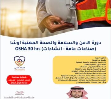 دورة الامن والسلامة متاحة طوال العام بسعر مميز لجميع الدول العربية للاستشارات التدريبية يمكنك التواصل مع المستشار السعودي محمد عناني جوال 0556684845 الموقع الالكتروني mohammed-anani.com ... قراءة المزيد